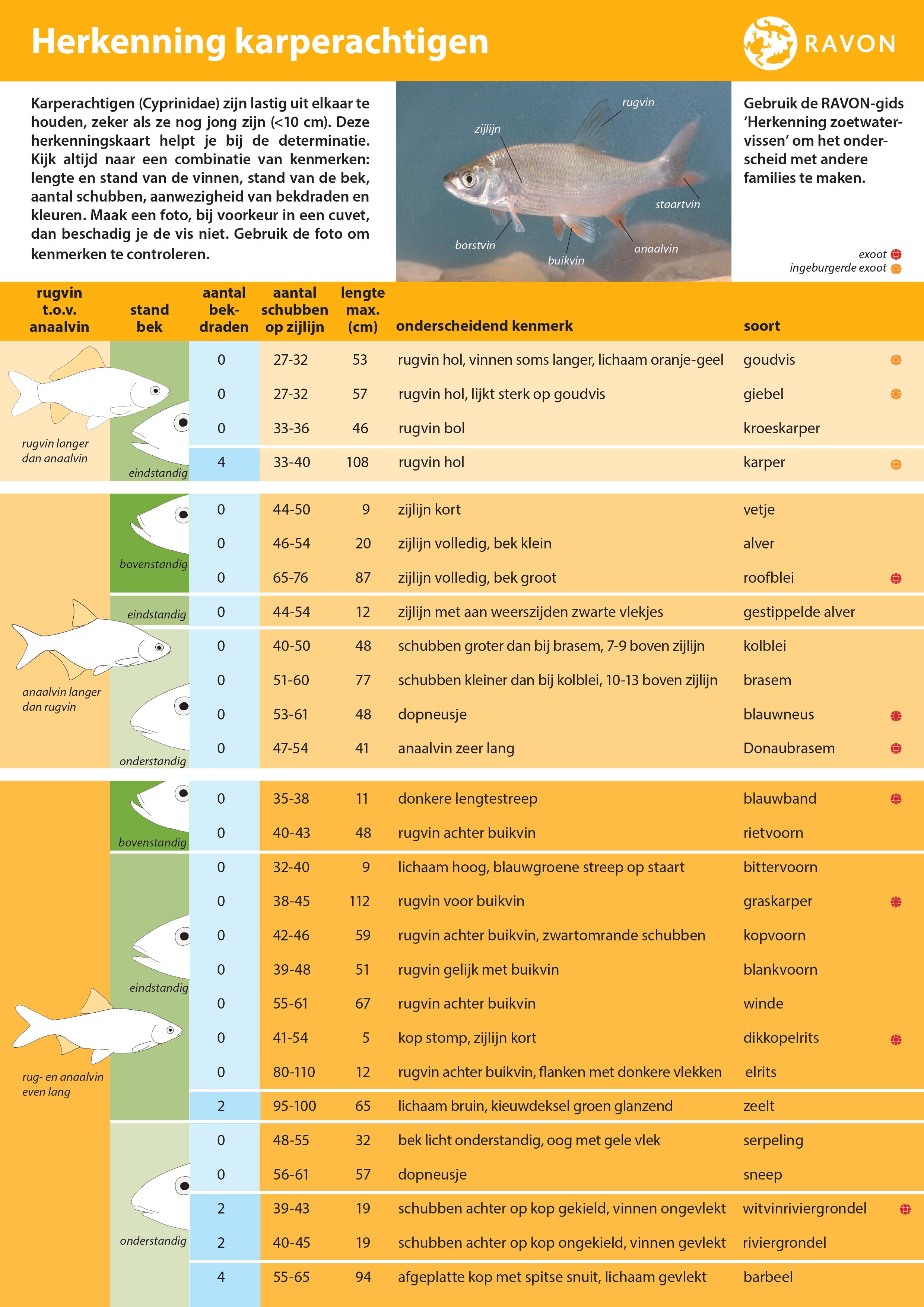 Met behulp van de nieuwe herkenningskaart kunnen de meeste karperachtigen die in Nederland voorkomen snel op naam worden gebracht.