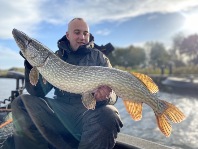 Het zonlicht dat van achteren door de vinnen van deze 104 cm lange snoek schijnt geeft deze koude foto van Joep van Elsacker toch een warme gloed.