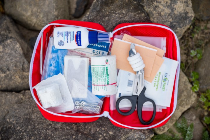 Ga nooit van huis zonder verbanddoos en overweeg ook een tourniquet.