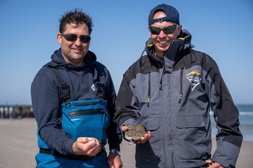 “We zochten in de regionen naar iets diepere plekken, zoals geulen en kuilen”, zegt Punselie, die bovendien bondscoach van het heren zeevisteam is – Kalle is assistent-bondscoach. Om de juiste stekken te bepalen observeerden de heren vanaf de trap in de duinen de omslaande golven en kregen een goed beeld van waar dieper water lag.