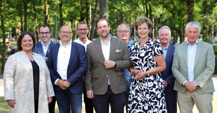 In het ochtendgedeelte mocht eerst het volledige bestuur onder een stralende zon op de foto, inclusief de kersverse bestuurders Ad van Hees en Wijbe Vrind en de herbenoemde voorzitter Marjan van Kampen.