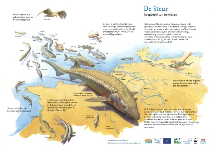Het doel van het project met de 29 gezenderde steurtjes is om te onderzoeken of de Rijn weer klaar is voor een herintroductie van deze enorme vis, die wel 5 meter lang en 400 kilo zwaar kon worden. Leuk weetje: precies 71 jaar geleden is op 26 juni in 1952 de laatste steur ooit gevangen in Nederland. De steur van 1952 had een lengte van 2.60 meter en woog iets meer dan 100 kilo.