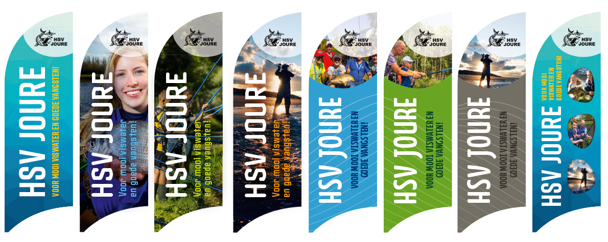 De vereniging kan het verenigingslogo (nieuw of bestaand) gebruiken voor het vervaardigen van spandoeken en vlaggen. Sportvisserij Nederland heeft een aantal verschillende achtergronden laten ontwerpen, waarop het logo, verenigingsnaam en eventueel een regel tekst kan worden geplaatst.