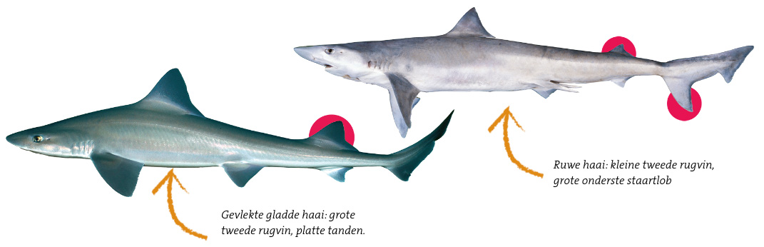 Verschil tussen de gevlekte gladde haaien en de ruwe haai