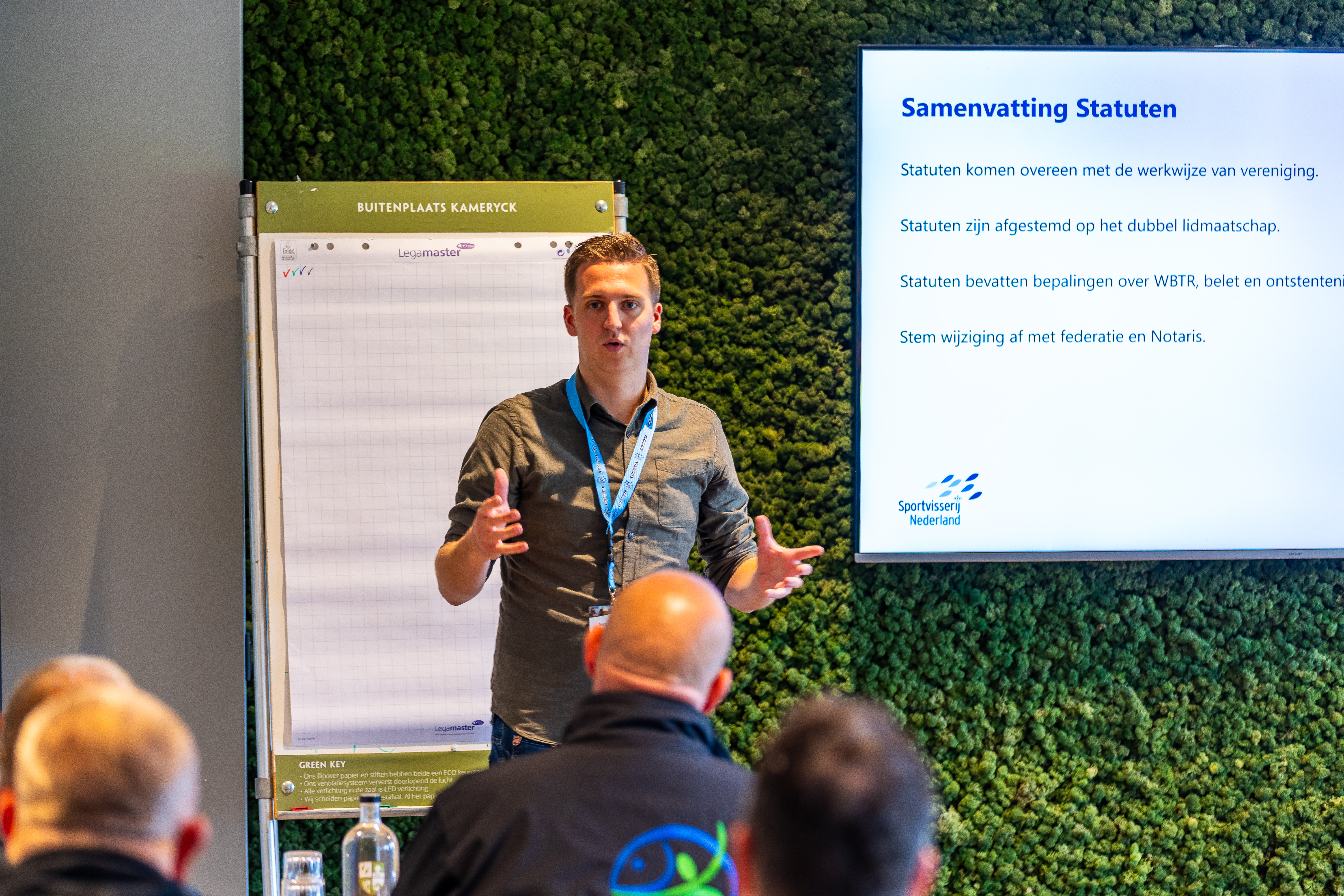 Bij Buitenplaats Kameryck werden de ongeveer 250 aanwezigen – bestuurders en vrijwilligers van hengelsportverenigingen plus medewerkers van Sportvisserij Nederland en de federaties – welkom geheten door dagvoorzitter Marco Kraal. Hij besprak ter inleiding met Rosetta Kooistra (directeur Sportvisserij Nederland) en Hans Gels (directeur Sportvisserij Oost-Nederland) kort de stand van zaken voor wat betreft de transitie van de sportvisserijorganisaties, waarna volksfilosoof en schrijver Bas Haring het podium betrad. Die kietelde de zaal met de vraag: wordt de sportvisserij binnenkort verboden? Aan de hand van tien stellingen die vaak worden gebruikt om te beargumenteren waarom sportvissen een verantwoorde activiteit is hield hij de aanwezigen een spiegel voor. In een boeiende dialoog met de zaal besprak Haring deze punten en werden argumenten voor en tegen uitgewisseld.