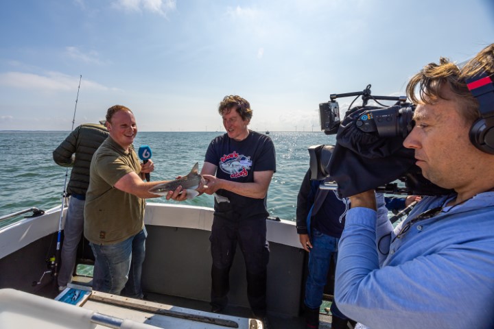 Verschillende media hebben vorige week uitgebreid aandacht besteed aan Sharkatag 2024. Aan boord van Sportvisserij De Zeearend - een van de deelnemende charterboten - legden diverse tv-ploegen, radioverslaggevers én schrijvende pers van dichtbij vast hoe daar in kort tijdsbestek tientallen haaien werden gevangen en gemerkt. Absolute klapper op de vuurpijl was het NOS Journaal, dat donderdag 18 juli in alle nieuwsuitzendingen van die dag het item over Sharkatag uitzonden - goed voor een miljoenenbereik.