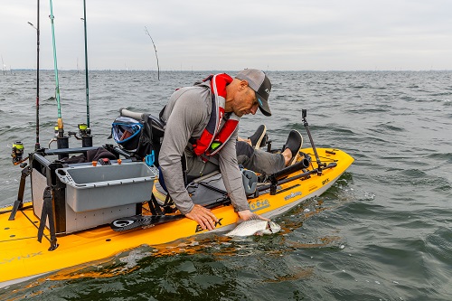 Sinds 2009 is Ronald Traas (49) een fervent kajakvisser. In zijn Hobie vist hij wereldwijd – van Noorwegen tot Costa Rica – op zoete en zoute rovers. Met de Oosterschelde als ‘achtertuin’ staat de oppervlaktevisserij op zeebaars evenwel ook bijzonder hoog genoteerd. In deze zeearm trapten we op een ochtend in juli achter hem aan om de kunst van dit spetterende spelletje af te kijken.