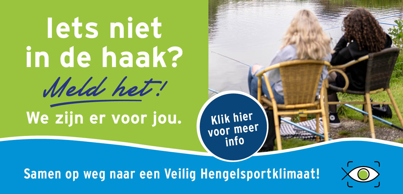 Iedere sportvisser heeft recht op een veilig en positief hengelsportklimaat. Ongewenst gedrag, zoals buitensluiten, discriminatie, kas leeggehaald, machtsmisbruik en (seksuele) intimidatie, vindt Sportvisserij Nederland onacceptabel. Kom je als sportvisser dit tegen, neem contact op met bijvoorbeeld Meldpunt Sportvisserij Nederland.