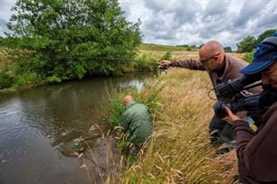 “Zie je het water aan de overkant tegen de oever botsen en daarachter de ‘roos’ op het water die wordt veroorzaakt door de kuil in de bodem? Daar moet je het aas aanbieden.” Gehurkt zittend maak ik een onderhands worpje richting de plek die Ruben me aanwijst. Met een kleine plons belandt het blokje Smac – met daarin de haak verstopt – in het water, waarna ik de beugel sluit en de lijn strak draai. Nog geen minuut later voel ik eerst twee voorzichtige tikjes, om bij de derde (ferme) tik de haak te zetten. De vis bedenkt zich geen seconde en spurt er direct vandoor. Na eerst stroomafwaarts en later stroomopwaarts te zijn gezwommen, kan ik een mooie barbeel richting het landingsnet dirigeren. Die is binnen!