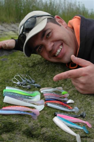 Er is een aantal kop-vormen dat ik altijd bij heb. De ronde kop, de teardrop kop en de bullit loodkop. Eigenlijk bepaalt de keuze van het kunstaas de keuze van de loodkop. Op een Bass Assassin of een Saltshaker Shad gebruik ik eigenlijk bijna altijd een ronde loodkop of een bullit loodkop. Op twisters vind ik een teardrop goed staan. Bij de keuze van een loodkop probeer ik te kijken naar de stroomlijn van het geheel. De shad en de loodkop moeten als het ware één geheel zijn, een bepaalde stroomlijn hebben. De stroomlijn van de combinatie kan veel verschil uitmaken, zowel boven het water als in het water. Een twister met een teardrop loodkop heeft uitstekende werpeigenschappen op het moment dat je bijvoorbeeld met veel wind te maken hebt. Een bullitkop met een bass assassin shad is door de stroomlijn sneller op de bodem dan een ronde loodkop. Er zijn momenten dat juist dat soort kleine dingetjes het verschil kunnen uitmaken, maar dat is niet vaak hoor!