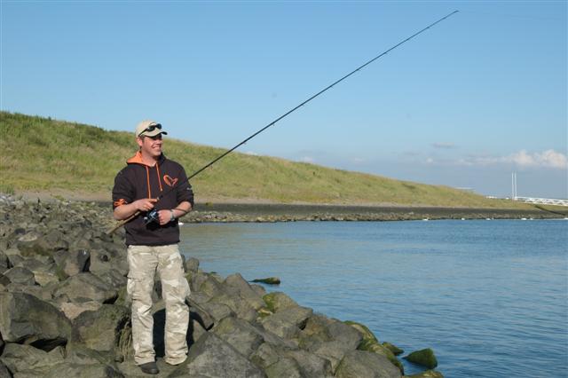 Carl, hier met een jonge, maar zeer fanatieke zeebaarsvisser: "Ik wens alle Visbladlezers net zulke mooie vissen toe, veel succes allemaal!"