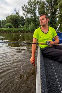 Het is 07.00 uur ’s ochtends als we ons half juli melden in de jachthaven van Lage Zwaluwe. Jeroen is er klaar voor en de 50 PK Yamaha achter de boot is al warmgedraaid. “Het is een vroegertje, want de ochtend is dit jaar opvallend genoeg de toptijd. In voorgaande jaren waren juist de uren rond middernacht het meest productief. Meervalvissen in eigen land is nog steeds een beetje pionieren.” Sinds hij zeven jaar geleden zijn eerste grote meerval – een fors uit de kluiten gewassen exemplaar van 1.68 meter – ving, is hij echter verslaafd. “Dat was in dat kribvak”, wijst hij op weg naar de eerste stek aan.