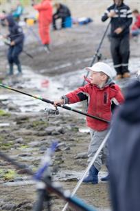 E ven een stapje naar voren, de hengel boven je hoofd houden en daarna inwerpen zoals we hebben geoefend.” Laurens Delivorias (5) zet zich schrap, ‘drukt’ af en even later belanden zijn zeepieren op een meter of twintig uit de kant in het water van de Westerschelde. Trots kijkt hij na dit puik staaltje werptechniek met de hengel nog in de hand zijn vader Randy aan. “Goed zo. Nu je hengel in de steun zetten en de lijn strak draaien. Dan kun je daarna de haken van je andere onderlijn van aas voorzien.”