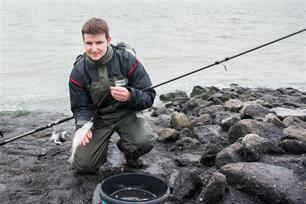 de Nederlandse kustlijn op wijting vissen; zowel vanaf