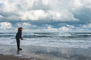 “Zeg jij maar waar we gaan staan. Het is tenslotte jouw feestje”, zegt Clarinda van der Zande tegen dochter Amber als we bovenaan de duinovergang bij de Zeven Golven staan. Die scant het strand van links naar rechts en wijst resoluut naar het vak dat recht voor ons ligt. “Daar ligt een muitje, dus die plek wordt het.” Met pa en ma in haar kielzog daalt ze de trap af, om vervolgens aan de rechterkant van het strandvak haar viskist neer te zetten. “Het opkomende water stroomt naar rechts richting de paalhoofden”, verklaart ze haar keuze. Clarinda en Frank kiezen positie bij de rij paalhoofden links.