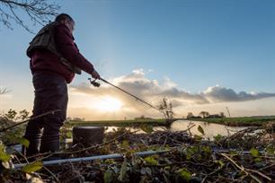 “Deze kant op”, gidst Olav ons op een vroege morgen begin februari door de bushbush van bramenstruiken in de polder. Niet veel later staan we aan een brede wetering, door de bosschages achter ons enigszins beschut tegen de straffe en koude noordenwind. “Die wind is niet ideaal”, geeft Olav grif toe, “maar desondanks kun je nu gewoon zeelt vangen hoor.
