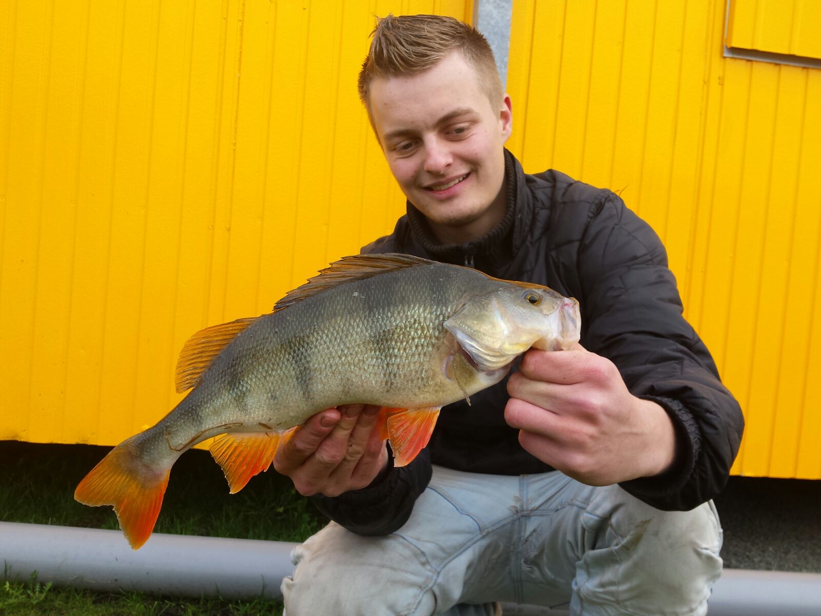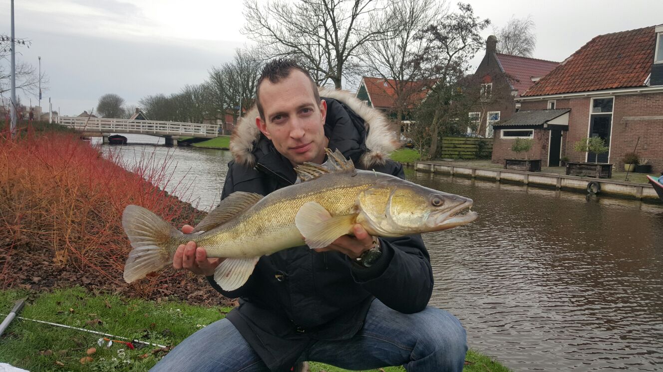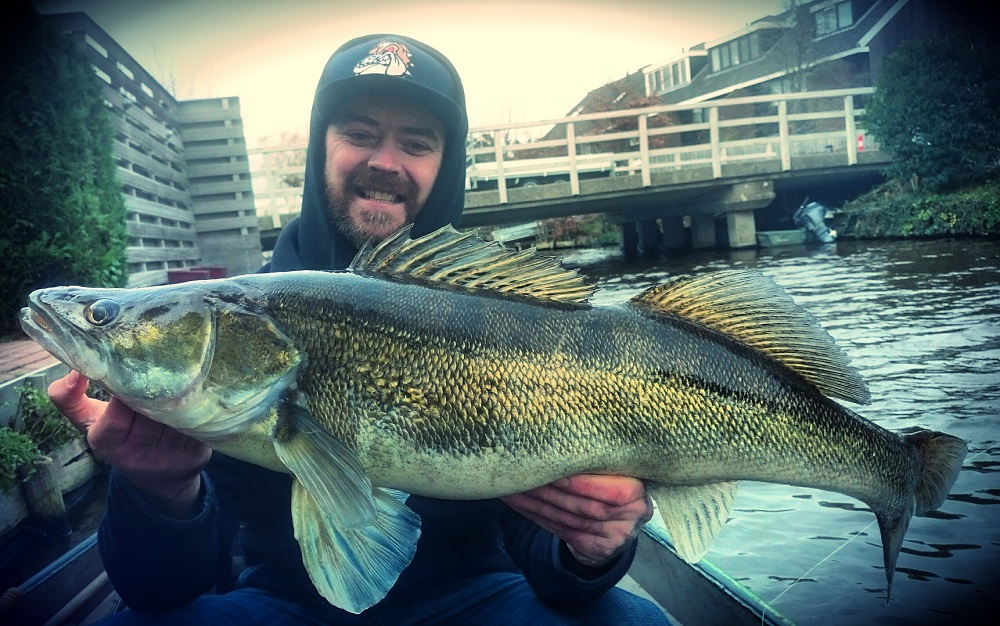 Arvid Noorman met een 40er baars en een originele achtergrond.
