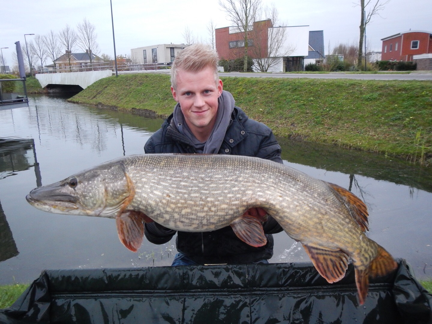 Richard Knijn ving op de laatste dag van zijn vakantie deze moddervette snoekdame van 108 cm!