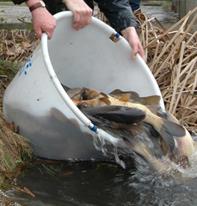 jaarlijks schubvis wordt uitgezet in visvijvers.