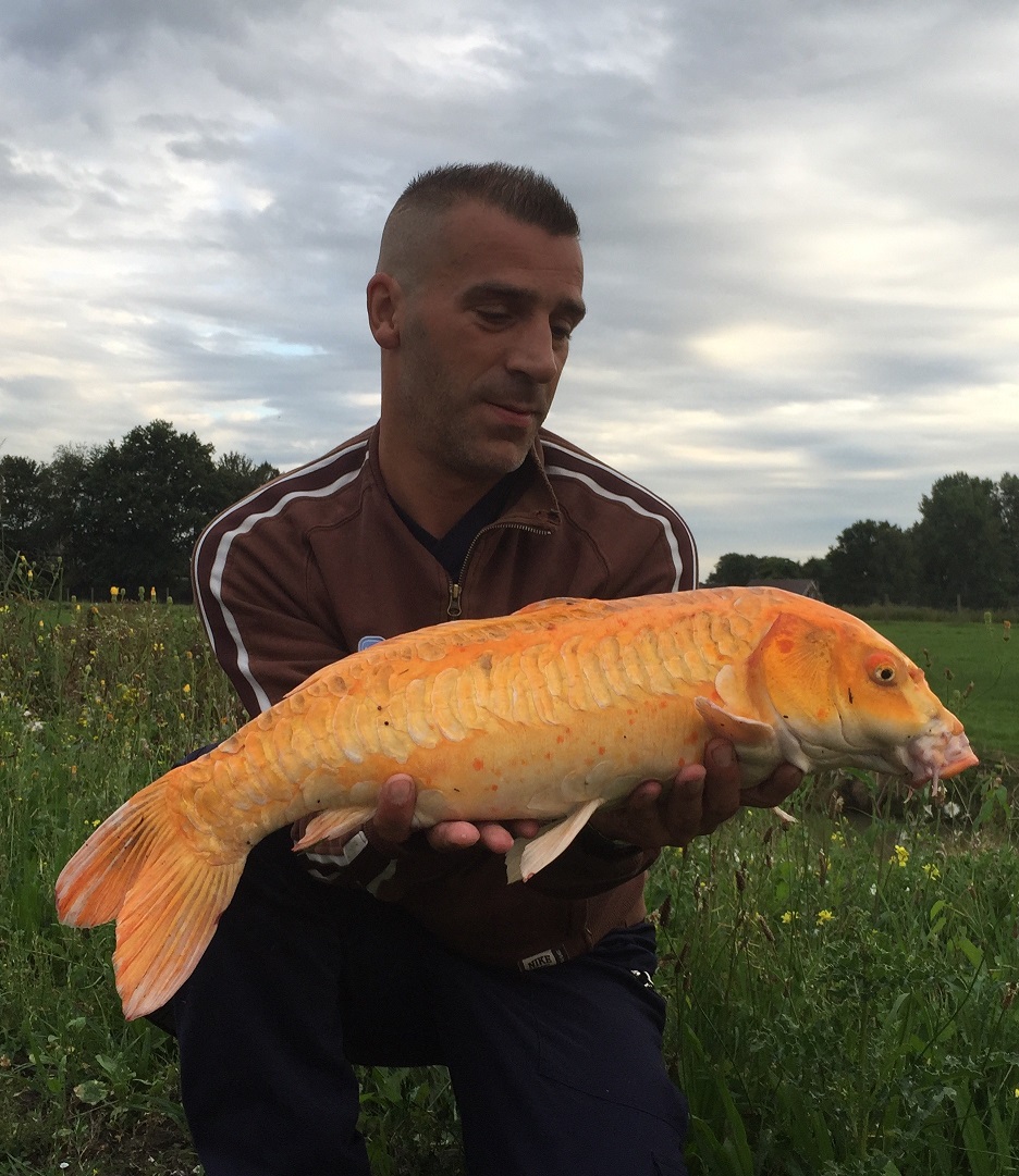 Perry Alleman zat al drie jaar achter deze goudkarper aan en wist hem uiteindelijk te verleiden met de penhengel.