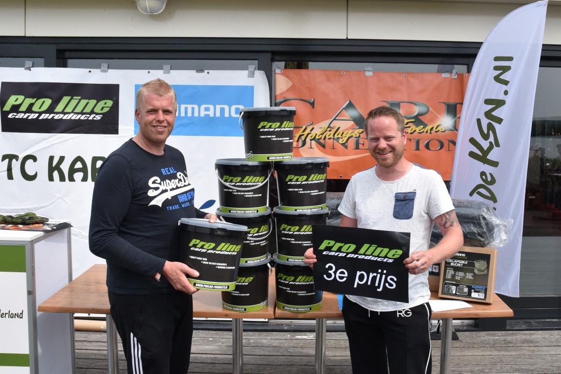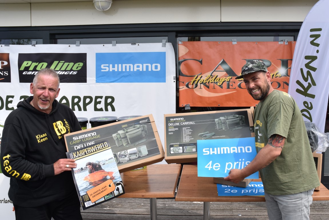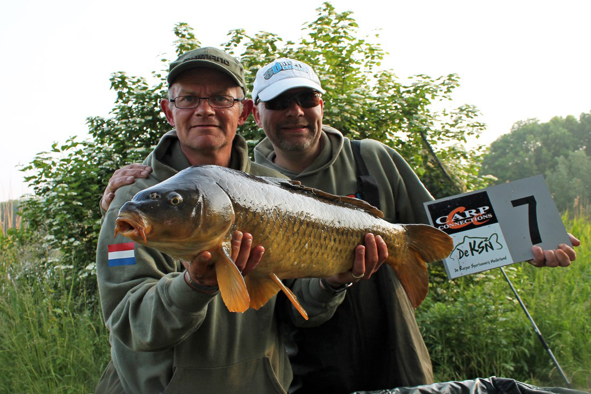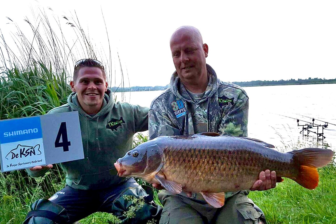 Zaterdagnacht en zondagochtend werden nog drie vissen gevangen: spiegelkarpers voor Henri & Henk en John & Ricardo en een schubkarper voor Erik & Maik.