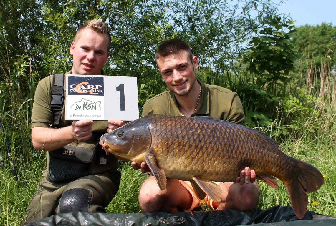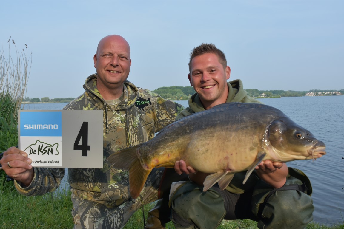Zaterdag overdag kon het koppel Henri & Henk hun tweede karper bijschrijven: een schubkarper van 9,4 kg. Aan het begin van de avond was het in de sector Shimano prijs voor Marcel & Henk en tot groot plezier van controleur Marcel Aarden (coördinator Spiegelkarperproject Bernisse) was de eerste spiegelkarper geland. Binnen vijf minuten kon Marcel in zijn uitzettingsoverzicht de match vinden: spiegel nummer 154, uitgezet in 2013.
