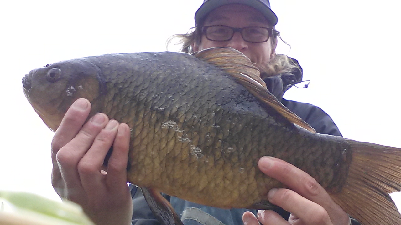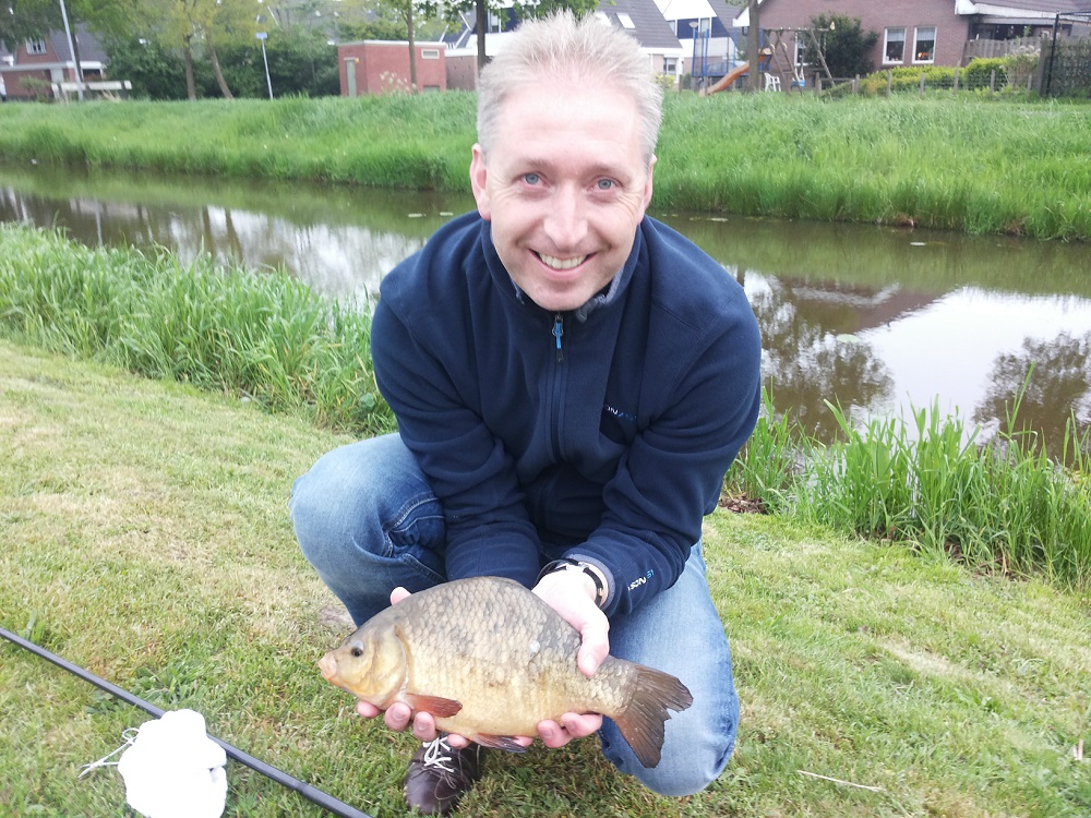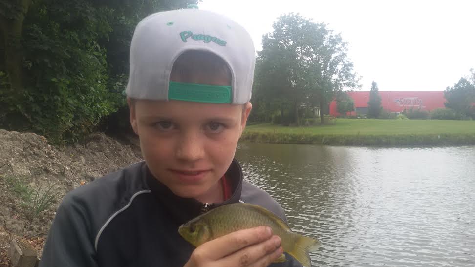 Daan van der Spek ving een mooi visje in een vijver in de buurt. Hoewel het het moeilijk te zien is of het om een kroeskarper gaat geven we Daan het voordeel van de twijfel:
