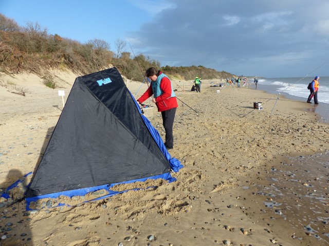 Op het strand van Kilgorman is het overdag tot op hooguit 50 meter met een feeder, bot, baars en pieterman te vangen. Arjan stond in vak A in het midden, Frank had een waardeloze loting, staartstek en stond in de uitmonding van een zoetwater stroompje en had geen bank op 50 meter zoals zijn vakgenoten. Marien had in vak C redelijk geloot, evenals Remi en Ruud. Het eerste uur draaiden we nog volop mee maar de laatste 3 uur kregen we ze niet meer te pakken en liepen we achter de feiten aan.Het vervelende is dat we niet weten waaraan het ligt, aas was goed, onderlijnen ook, het maakte niet uit waarmee je viste zo leek het wel, iedereen gebruikte wel verschillende onderlijnen maar bij ons kwamen ze er niet aan.