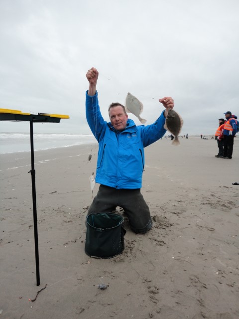 Aanpassen van de onderlijnen en de tactiek was het devies. Het geluk was dat de vangsten vanaf het tweede uur stevig aantrokken. Degenen die op dat moment de keuze goed hadden gemaakt konden even later de nodige vissen laten meten. Trekken van twee of zelfs drie vissen tegelijk waren géén uitzondering. De vangst bestond hoofdzakelijk uit botten, maar ook werden er zeebaarzen, gulletjes en wijtingen gevangen. Kortom, prima omstandigheden voor een mooie strijd.