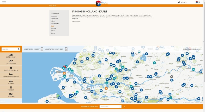 De website is zo ingericht dat je als bezoeker snel en gemakkelijk de voor jou meest interessante visbestemmingen vindt. Door te zoeken op vistechniek – bijvoorbeeld roofvissen, zeevissen of witvissen – of zelfs per vissoort, word je automatisch naar de beste locaties geleid. Ook krijg je een overzicht van de top-20 visbestemmingen van Nederland, inclusief korte beschrijving en de beste stekken.