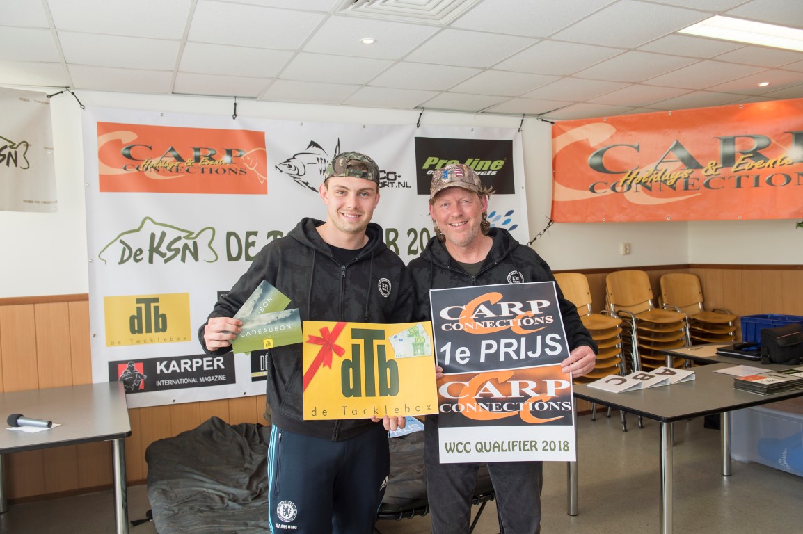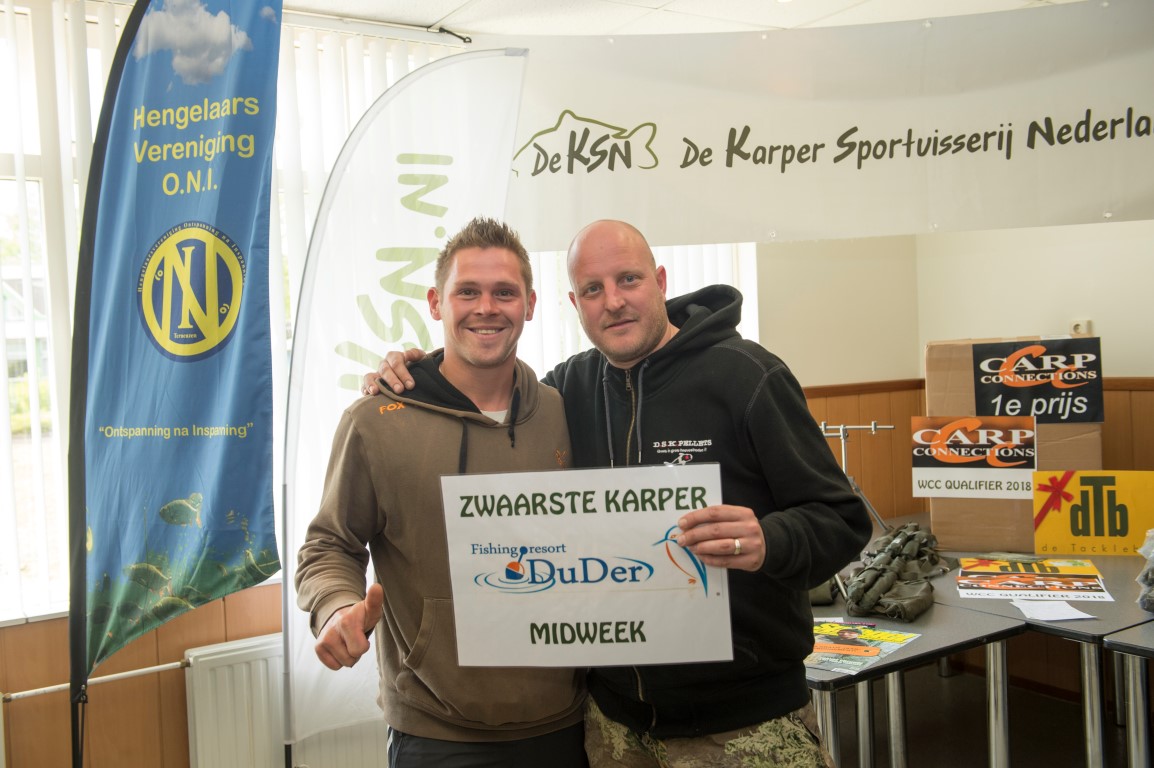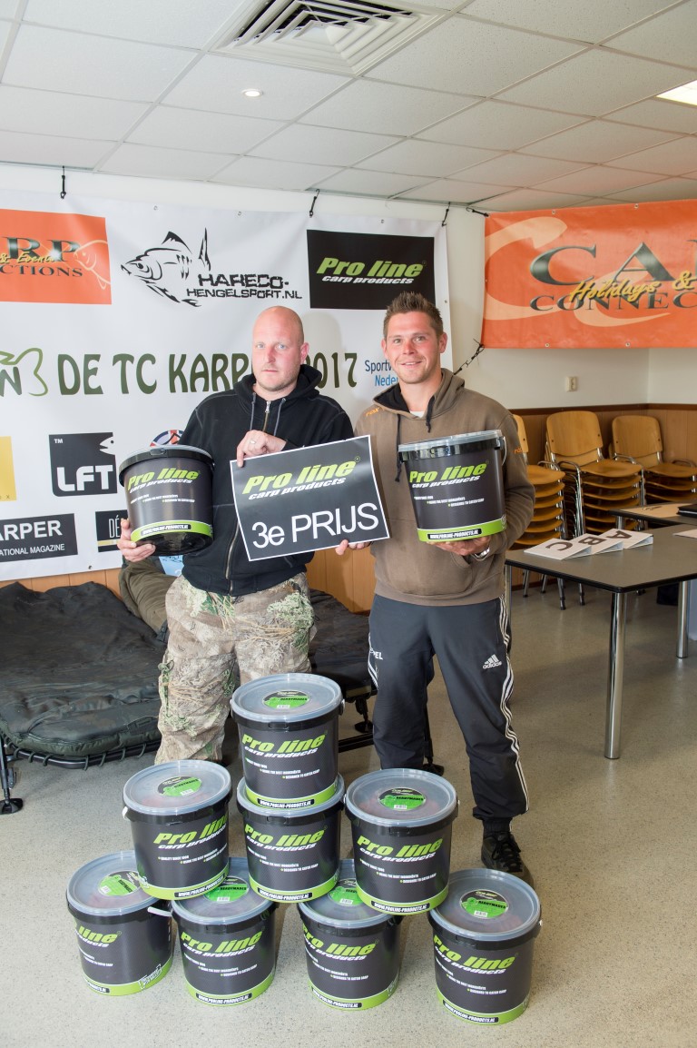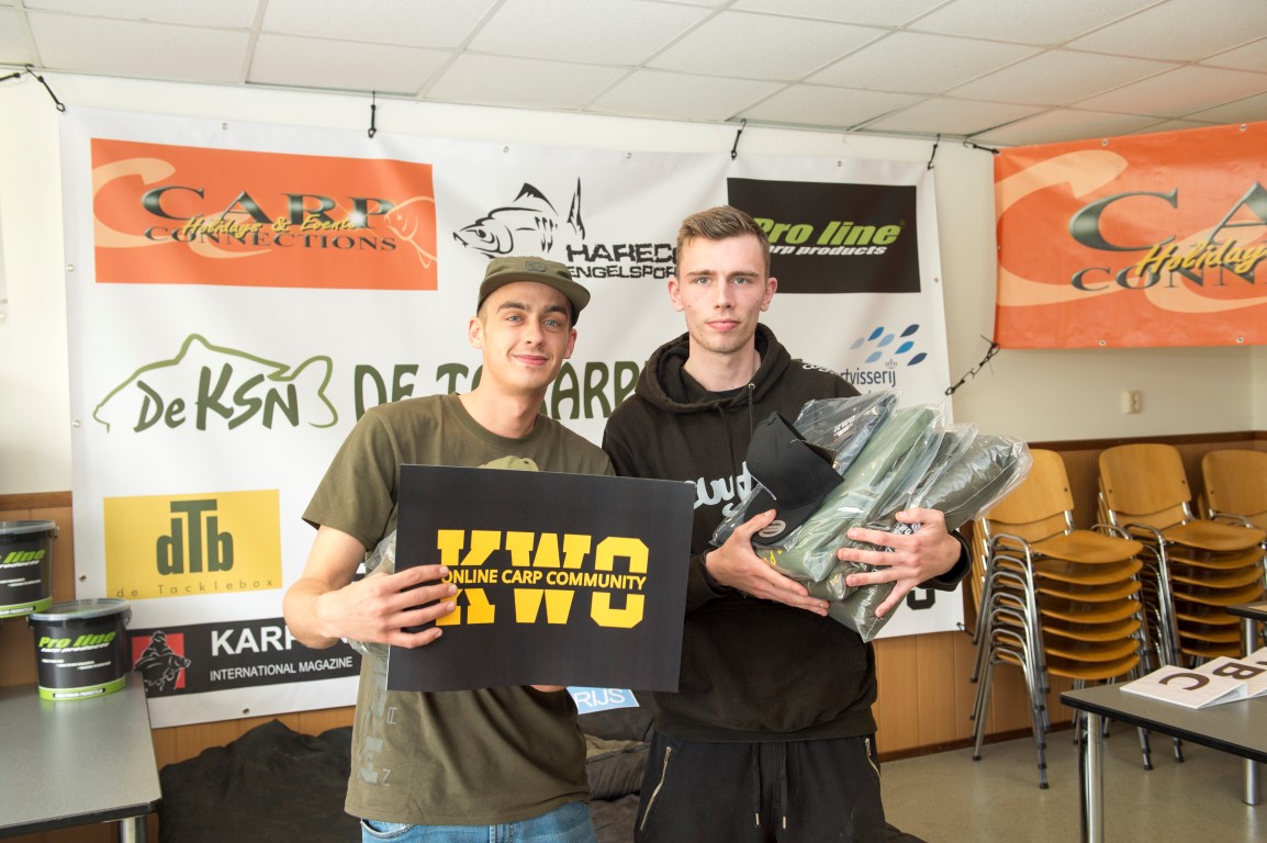 De eerste prijs is gewonnen door het koppel Stephan Bosveld & Rien Bouwman, met de vangst van zes karpers met een totaalgewicht van 63,8 kilo. De tweede prijs was voor John Hendriks & Paul Breedveld (zes stuks, 47,8 kilo) en als derde is geëindigd het koppel Ricardo Eerland en Sander van Triet (drie stuks, 40,2 kilo). De derde prijswinnaars wonnen met hun vis van 17,8 kilo ook de prijs voor de zwaarste karper, overigens op de voet gevolgd door een karper van 17,7 kilo, gevangen door Richard van leeuwen en Mark Koenders.