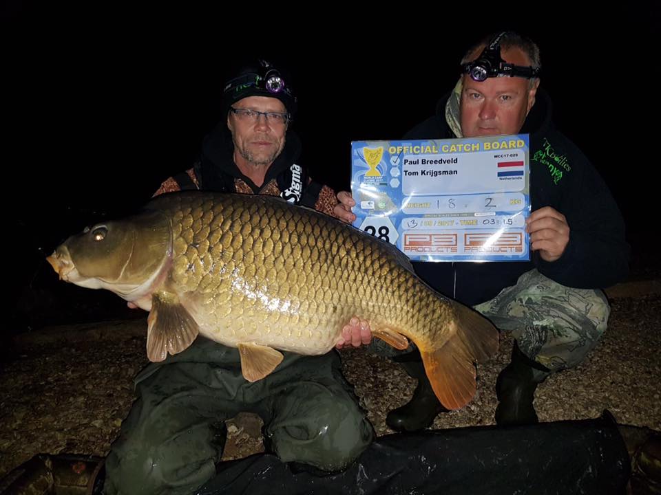 In de laatste nacht van de wedstrijd zijn er enkele verschuivingen opgetreden in de top tien. Voor het eindresultaat gelden de drie zwaarste karpers die je als koppel vangt, dus de vangst van één of twee echt zware vissen kan veel veranderen. In de einduitslag zijn de Nederlandse teams helaas uit de top drie verdwenen. Op de eerste plaats is geëindigd het Engelse team Tim Paisley en Lee Jackson, geassisteerd door Benji Petutshnig-Fisherlauser. Deze zeer ervaren vissers wisten karpers van 25,5 kilo, 25,0 kilo en 21,7 kilo te vangen. Dennis Nijland, Richard van Leeuwen en Peter Borninkhof zijn met vissen van 23, 20 en 18 kilo op de vierde plaats geëindigd, Peter Vlasveld en Jan Willem Braam zijn zesde geworden en Paul Breedveld en Ton Krijgsman eindigden op de zevende plek. Gezien het grote aantal deelnemende teams een hele knappe prestatie!