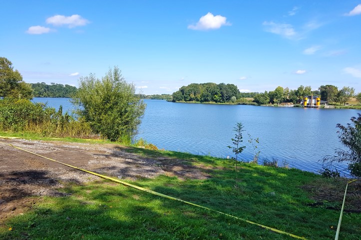 Het Deseda meer, gefotografeerd vanuit de lucht en vanaf één van de WK stekken. Redelijke stekken