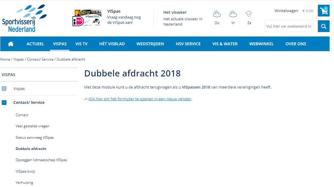 Tevens is het mogelijk om de afdracht terug te vragen als je onlangs nieuw lid bent geworden via een Voorlopig Bewijs van Lidmaatschap (VBL) bij een nieuwe vereniging, terwijl je al lid was van een andere vereniging. Via de VISpas-website kun je overigens al direct de extra VISpas bestellen, zodat je maar één keer de afdracht betaalt. VISpashouders die de dubbele afdracht(en) van de VISpas 2017 nog niet hebben teruggevraagd – maar daar wel recht op hebben – krijgen de afdracht(en) eind februari automatisch teruggestort.