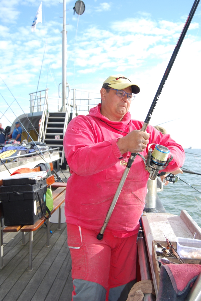 Na het startschot vlogen je al héél snel de scharren en wijtingen om de oren! Het waren zoals verwacht de Nederlanders en de Belgen die de toon zetten. De toppers moesten zeker meer dan honderd vissen gaan vangen om hoog in het klassement te komen en dan liefst wijting, omdat deze soort 2 punten per vis ging opbrengen, tegenover bv de schar van 1 punt. Andere soorten, zoals bot, schol en zeebaars waren toeval treffers. Het was dus zaak om “hoger te vissen”, om de wijting te verleiden en dan ook nog eens in een hoog tempo.