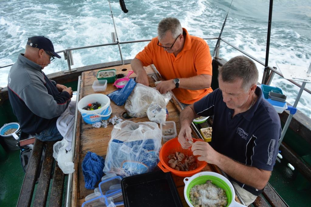 Het weer is voor de competitiedagen prima en de boten kunnen naar de geplande wedstrijdzones varen. Als aas krijgen de deelnemers drie kg schelpaas, een twaalftal garnalen en vier inktvissen. Ruim voldoende, maar het is hard werken om dat aas op tijd klaar te maken voor de wedstrijd. De vangsten zijn redelijk tot goed en bestaan uit Sargo’s, Lipvissen, Rode Ponen, Snappers, Pietermannen en de niet tellende vissen als alle soorten Makreel en Boga’s.