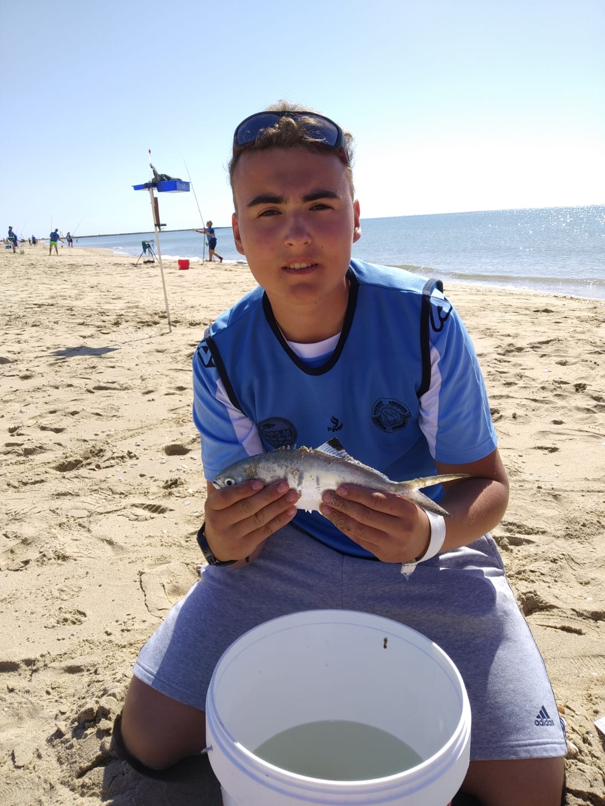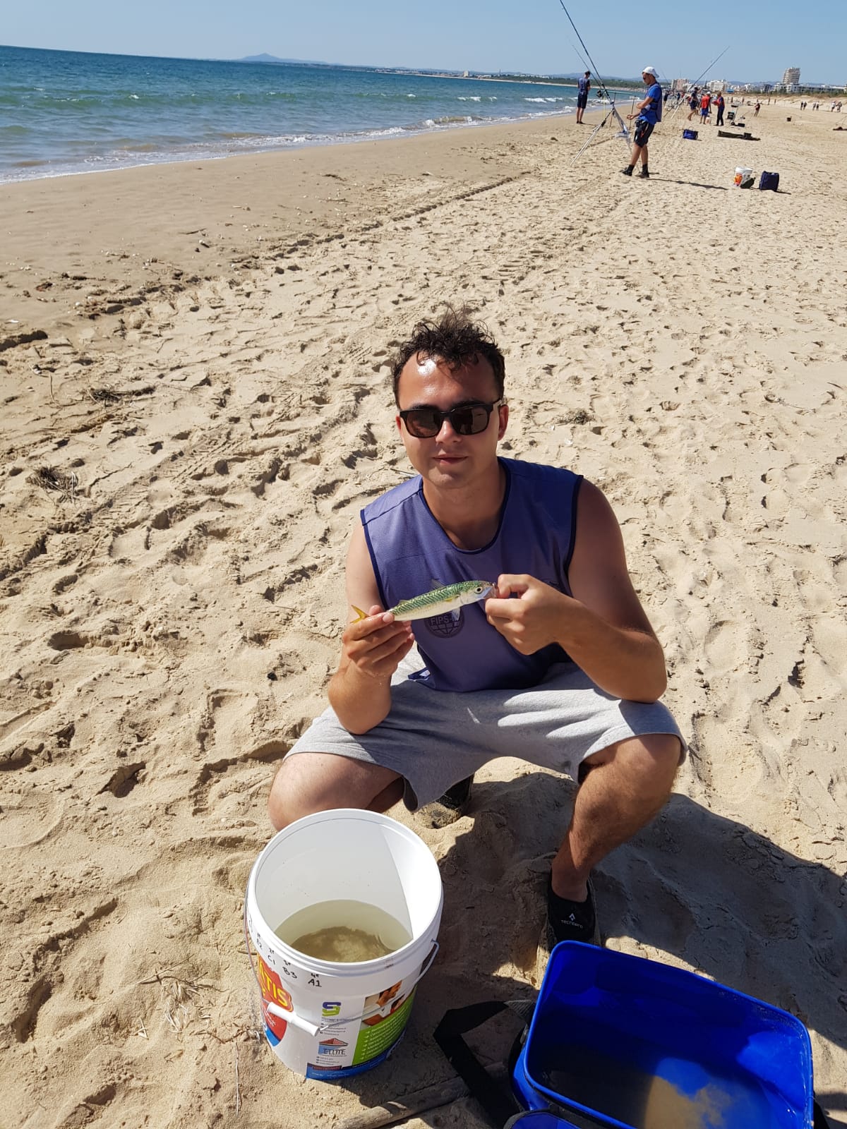 De U16 ploeg is deze dag niet in de uitslag opgenomen. Omdat de officiële training op zondag gehouden wordt, hebben wij om religieuze redenen niet met de voltallige selecties gevist. In het reglement van de internationale bond FIPS-MER is beschreven dat er pas een uitslag gemaakt kan worden bij deelname van ten minste vier vissers. In ons geval waren dat er vandaag twee. Daan had op het eerste oog een mooie loting met een kopnummer (E8), dichtbij een strekdam. Helaas bleek dit stuk van het parcours door de stroming juist erg ondiep te zijn, waardoor de vangsten matig waren. Hij bleef met een dorade en een kleine goudharder op een zevende plaats in het vak steken.