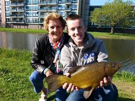 Noud (6 jaar) en Fos (bijna 4 jaar) vissen vaker samen met papa. Ditmaal wilde ze geen voorntjes vangen maar een heuse snoek. Een klein 2-delig kunstaasje gooide papa uit waarna de snoek snel toehapte. Noud en Fos hebben hem daarna keurig binnengehaald. Omdat ze zo trots op de foto staan, winnen ze beiden een mooie molen.