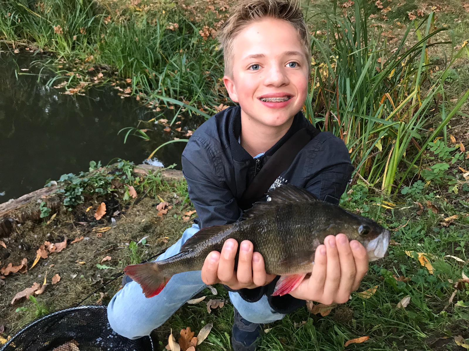 Thijs van Alphen is terecht blij met zijn grote baars.