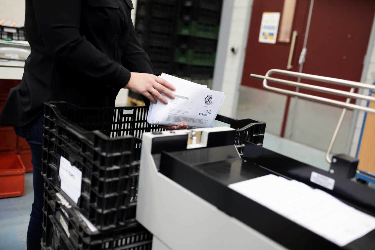 Zodra de kaart bedrukt is, wordt de bijbehorende brief geprint. Een machine kan dagelijks zo’n 10.000 VISpassen bedrukken. De eerste ‘batch’ voor 2021 bevatte 280.000 VISpassen en nam dus bijna een maand aan drukwerk in beslag.