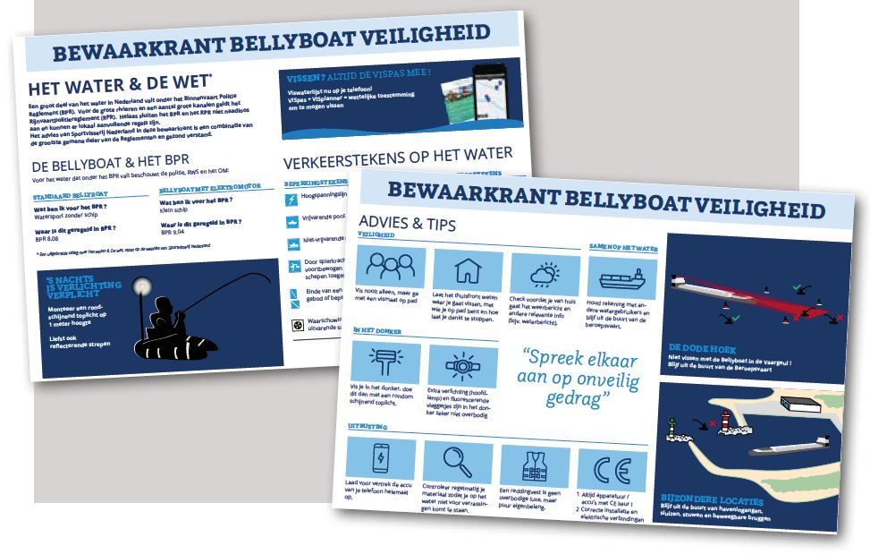 Een speciale werkgroep – met daarin fanatieke bellyboatvissers en vertegenwoordigers van Rijkswaterstaat, Schuttevaer en Sportvisserij Nederland – heeft haar licht laten schijnen over de verkeersregels op het water en mede op basis daarvan adviezen en tips voor een veilig gebruik van de bellyboat opgesteld.