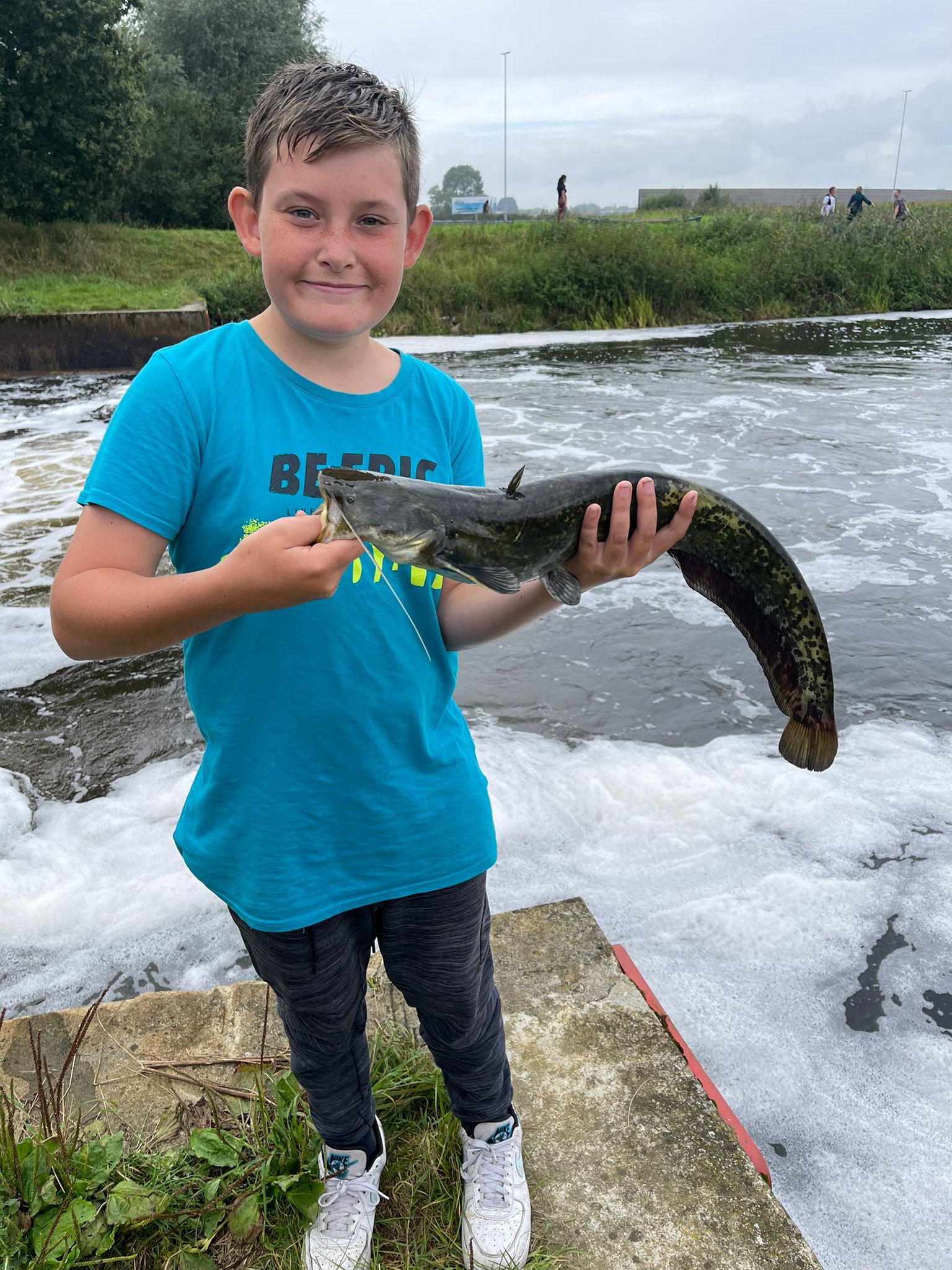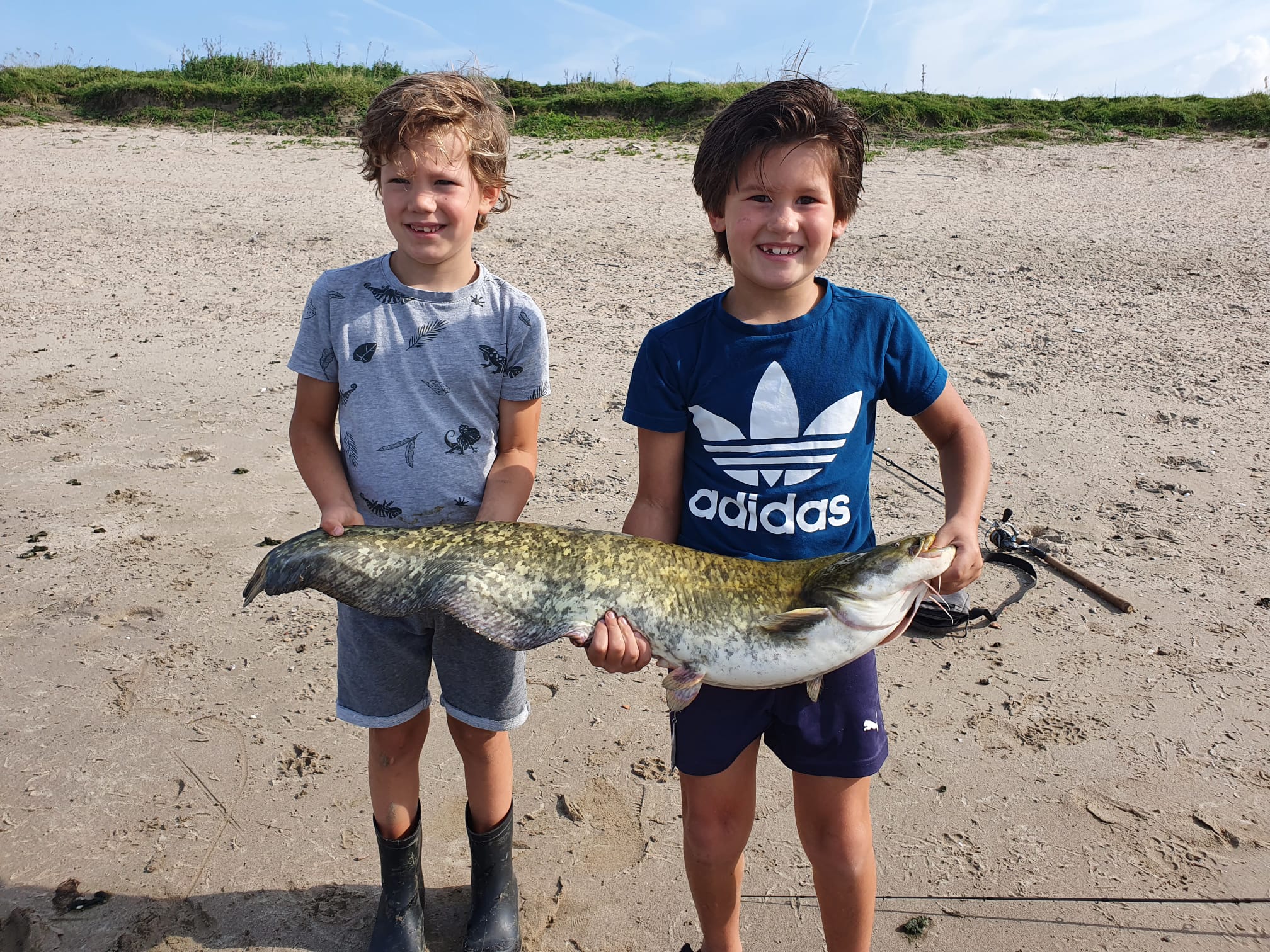 Bij familie van Daal vissen ze allemaal! Hier showen Luca en Elia een mooi getekende meerval.