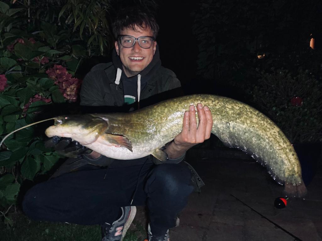 Bryan Bosschieter ving deze mooie meerval in het donker met wormen.