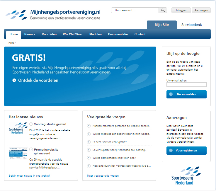 Sportvisserij Nederland biedt speciaal voor aangesloten hengelsportverenigingen een gratis websiteservice aan: Mijnhengelsportvereniging. Met Mijnhengelsportvereniging kunnen verenigingen op een eenvoudige manier een professionele website aanvragen en naar eigen smaak inrichten en onderhouden. Inmiddels hebben al meer dan 250 verenigingen een website via Mijnhengelsportvereniging.
