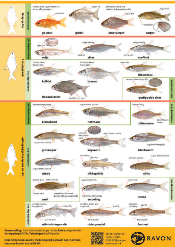 De Stichting RAVON geeft een nieuwe herkenningskaart uit met daarop alle karperachtigen. Omdat er in Nederland maar liefst 25 karperachtigen voorkomen die sterk op elkaar lijken is deze kaart een handig hulpmiddel voor de sportvisser.