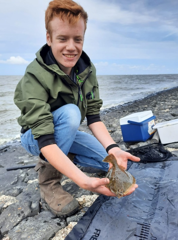 Aan de Friese kust ving Jesse Spoelman deze 35 cm lange bot. Als aas gebruikte hij een zager.