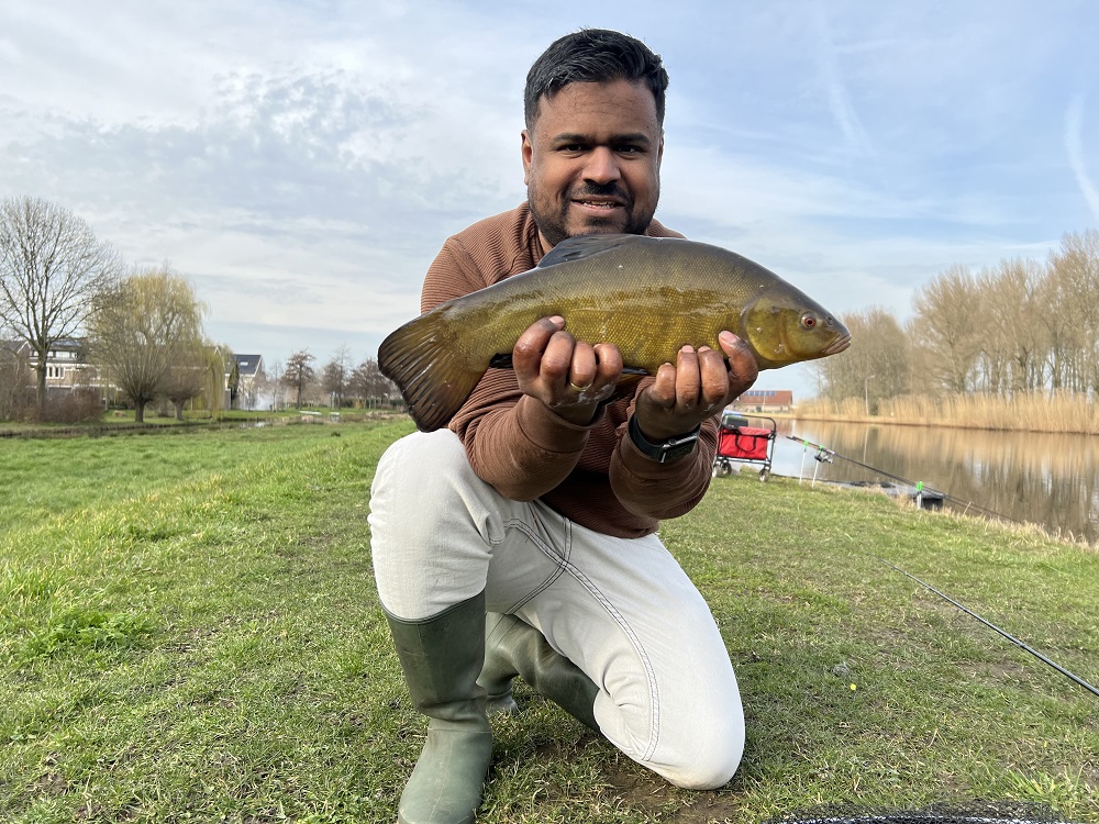 Al na een kwartier is het raak. De dobber schiet plotsklaps onder, waarna Boaz beheerst de haak zet. De sterke tegenstander geeft flink tegengas, maar belandt uiteindelijk in het net. Vader en zoon zien gelijk dat het een giebel is – en een flinke ook! Dit is een record voor Boaz, die dolgelukkig is met zijn nieuwe PR. De eerste vis van het jaar is binnen en daarna is Boaz niet meer te stoppen. “Hij wordt steeds vaardiger in alle handelingen en vist haast als een machine”, aldus Patrick. Vis nummer twee, drie en vier – allemaal mooie giebels – volgen al snel en er worden ook nog wat aanbeten gemist.