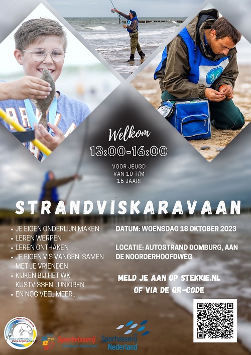 Aankomende herfstvakantie, regio Zuid, vindt de eerste editie van de StrandVISkaravaan plaats. Ben jij tussen de 10 en 16 jaar oud, is strandvissen je hobby en/of wil jij hier meer over weten? Houd dan woensdagmiddag 18 oktober vrij! Dit eendaagse jeugdevent, op het strand van Domburg, wordt georganiseerd door Sportvisserij Nederland in samenwerking met Sportvisserij ZuidWestNederland en aangesloten HSV’s. Vooraf aanmelden is verplicht.