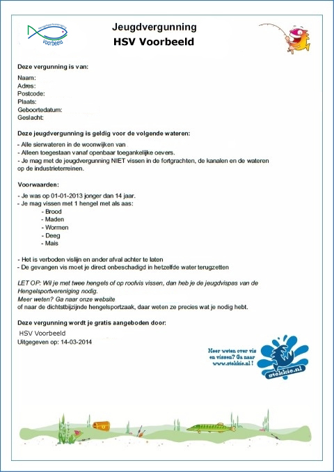 Het is belangrijk om de drempel voor de jeugd om lid te worden van een hengelsportvereniging zo laag mogelijk te houden. Tegelijkertijd zul je ook activiteiten aan moeten bieden om jeugdleden aan je te binden. Het uitgeven van een gratis jeugdvergunning voor het vissen met één hengel verlaagt de drempel voor kinderen om met een document te gaan vissen.