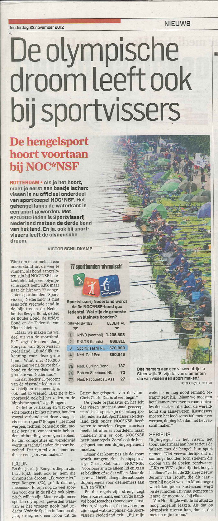 Vanaf 1 januari 2013 is de sportvisserij dus een van de grootste sportbonden van Nederland!